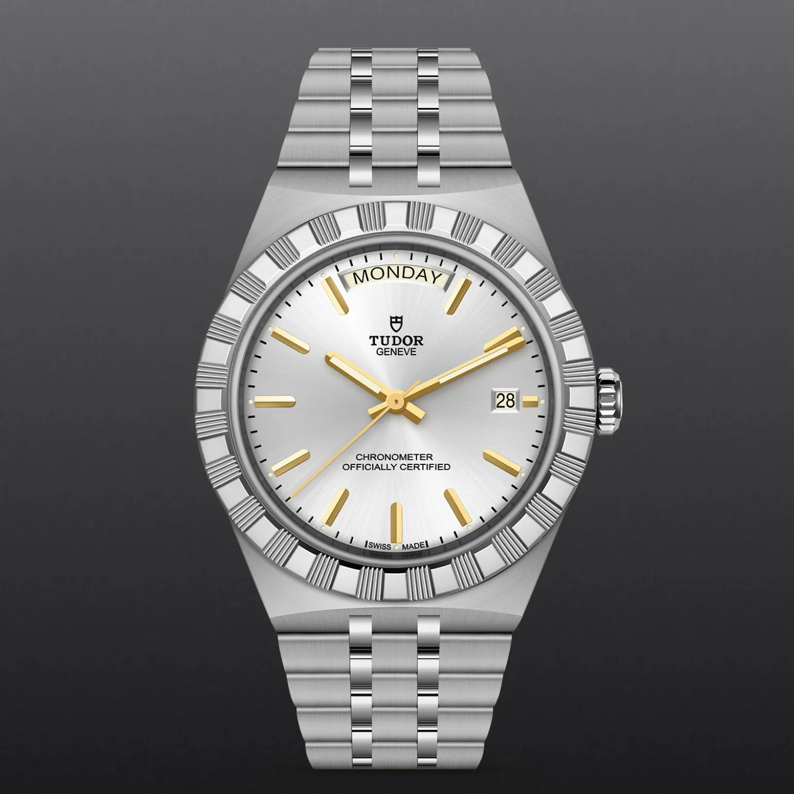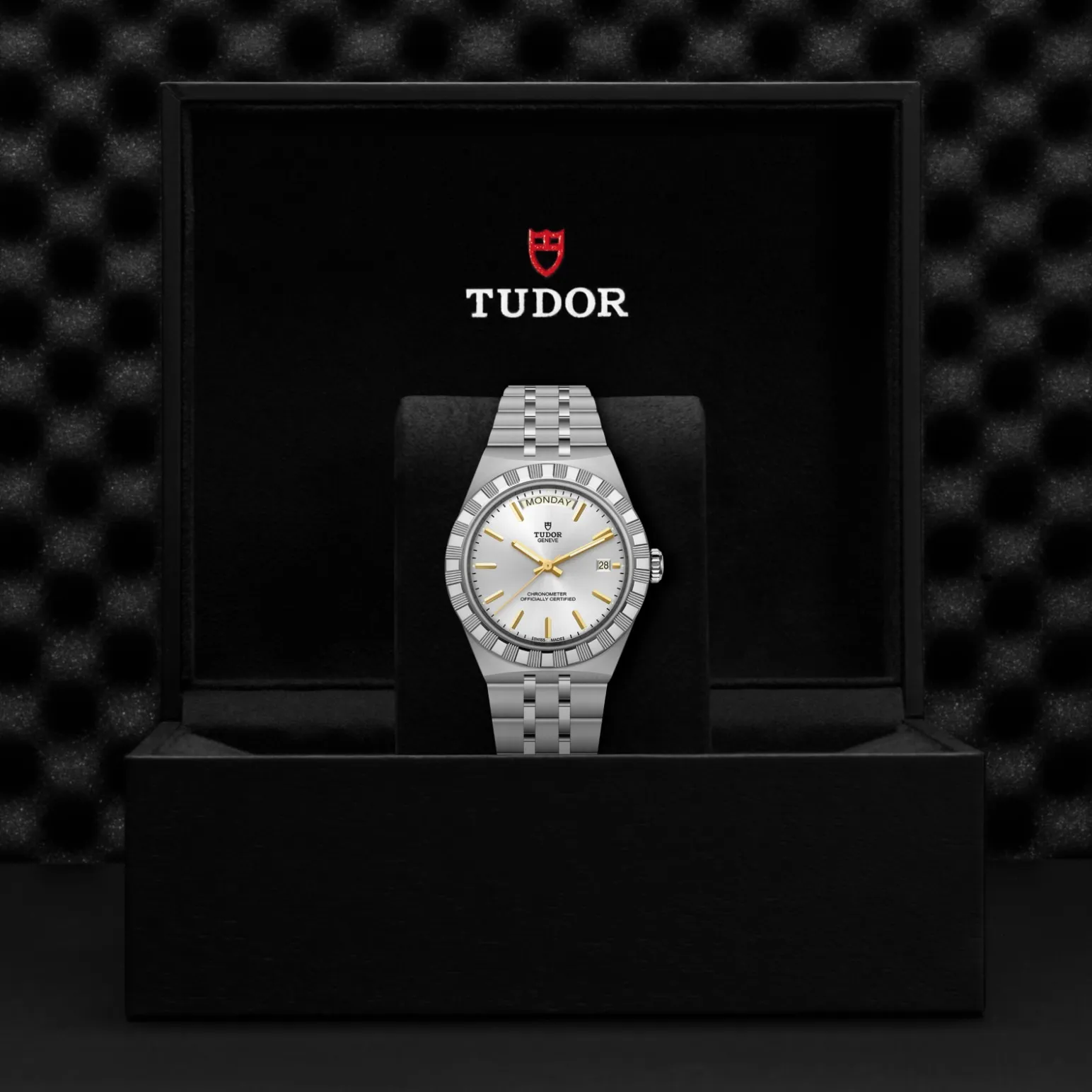 Il nome Royal fu usato per la prima volta da TUDOR negli anni ’50 per sottolineare la qualità superiore dei suoi orologi. La linea TUDOR Royal rientra nella tradizione del Marchio di proporre segnatempo dallo stile sportivo ed elegante, con movimenti automatici e bracciali integrati, ad un prezzo accessibile ma che non scendano a compromessi sulla qualità. Orologi dalle prestazioni tecniche all’avanguardia e l’estetica raffinata, al crocevia tra i modelli classici e quelli sportivi, i segnatempo di questa linea sono disponibili in acciaio o acciaio e oro e proposti in quattro misure con una vasta selezione di quadranti.
